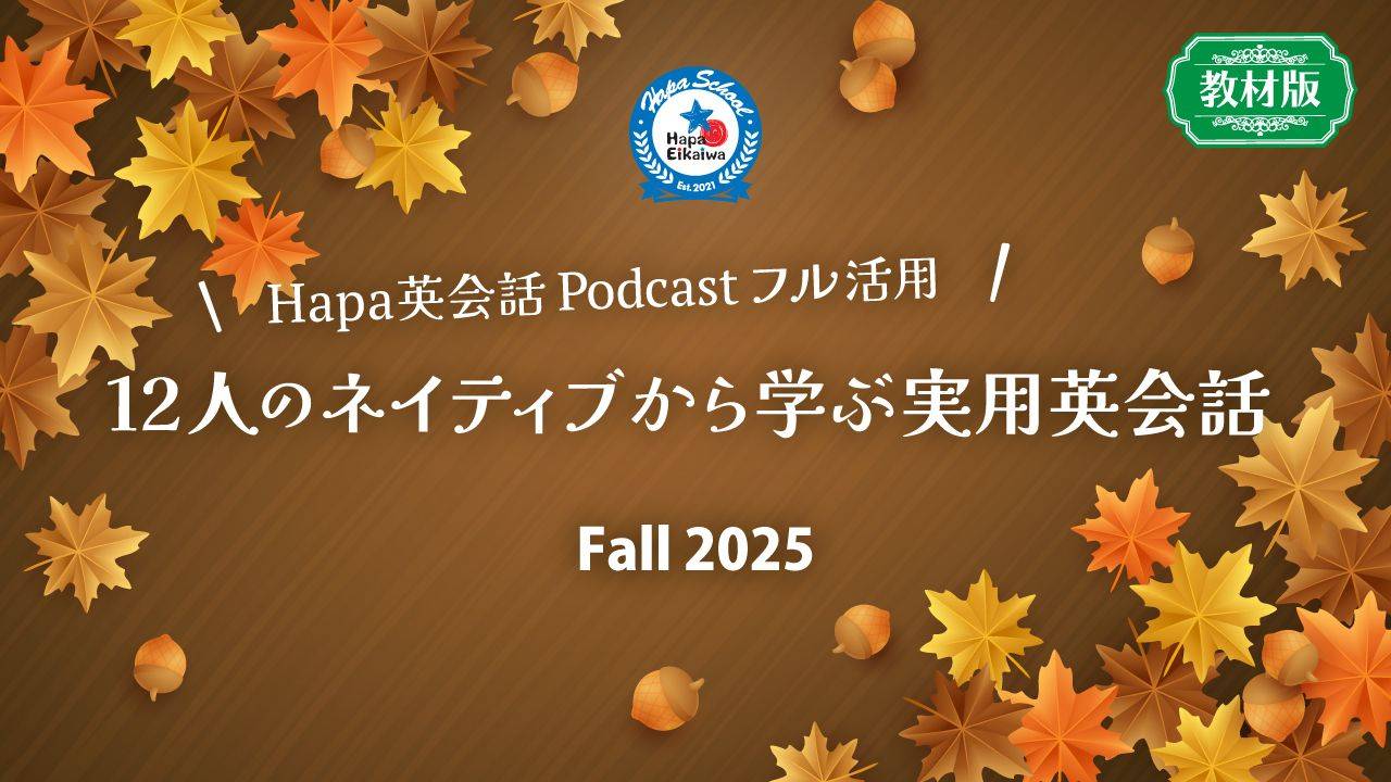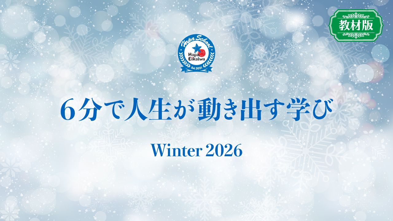 Hapa Schoo-Winter2025-教材版では、JunとAkinaが繰り広げる夫婦のリアルな日常会話をテーマに普段使いできる英語表現を楽しく学んでいきます。出会いや初デート、喧嘩、家事分担、子育て、旅行の思い出、未来の展望など、夫婦ならではのトピックを通じて、実践的で自然な英語表現を身につけていきます。