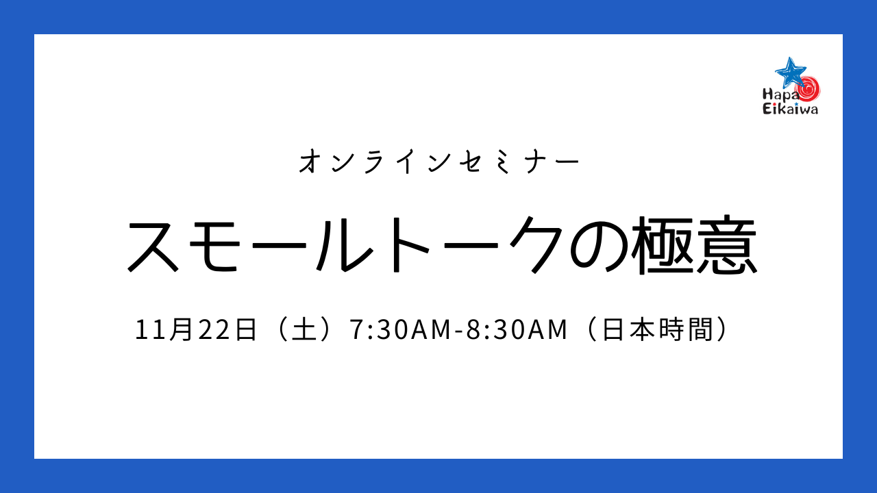 スモールトークができると英語での会話がもっと楽しくなります! この春は、スモールトークの極意をマスターして、英語での雑談を思いっきり楽しみましょう!